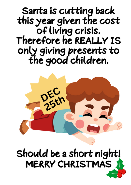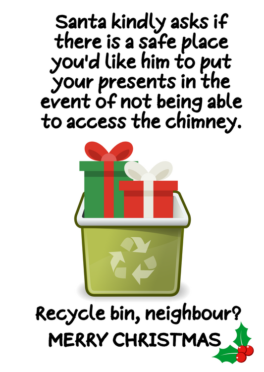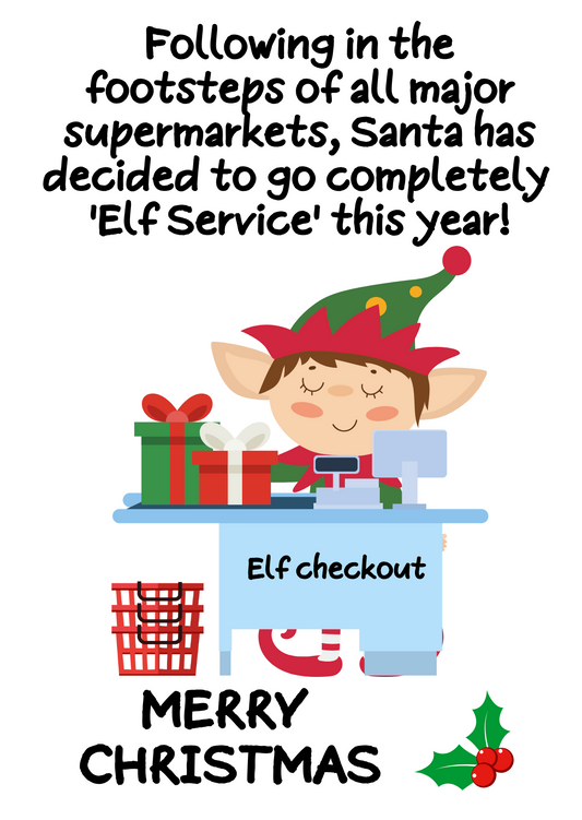 Santa Joke Christmas Card featuring on-trend Xmas pun about alternative delivery options for presents