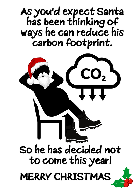 Santa Reduces his Carbon Footprint Joke Christmas Card