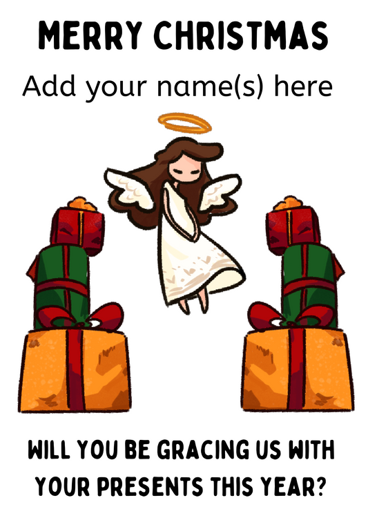 Personalised Humour Christmas Card for friends - Gracing us with your Presents