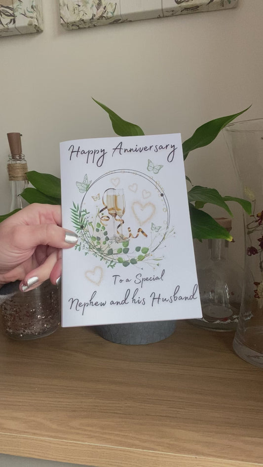 Nephew and his Husband Champagne Anniversary Card | Special Couple Anniversary Card for LGBT Nephew