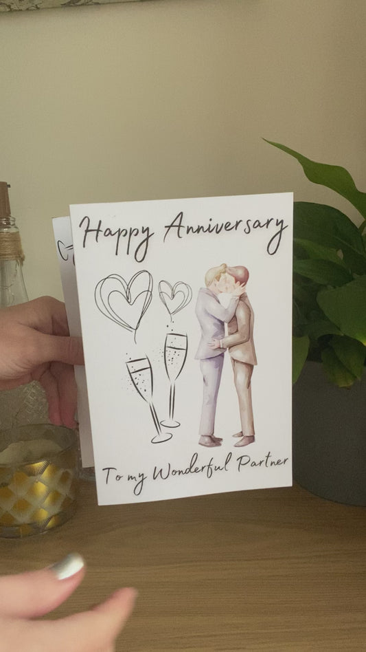 Gay Anniversary Card for Partner | LGBT+ Happy Anniversary Greetings Card for Wonderful Partner