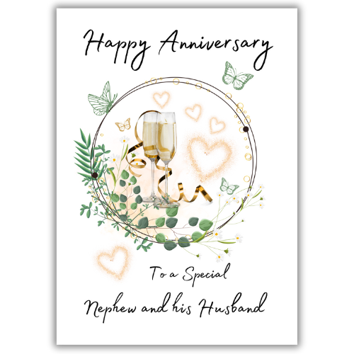 Nephew and his Husband Champagne Anniversary Card | Special Couple Anniversary Card for LGBT Nephew