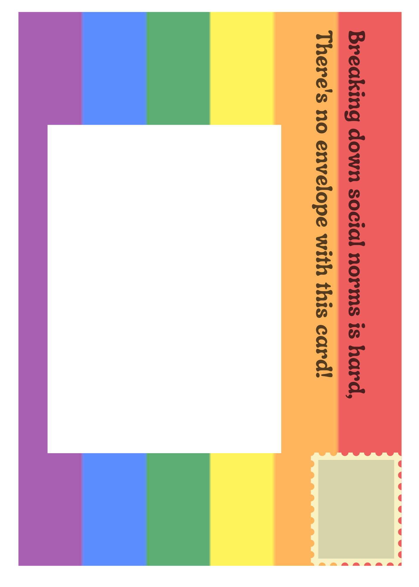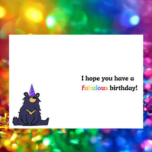 This gender neutral and unique LGBTQIA+ 'gay bae' birthday card is perfect to send to your gay friend to celebrate their special day. With built in posting pages, there is no need for you to use a separate envelope when delivering your card. The recipient is greeted with the LGBT+ Flag before they've even opened your card!