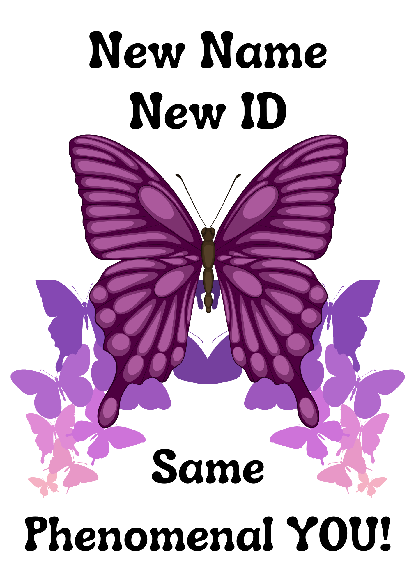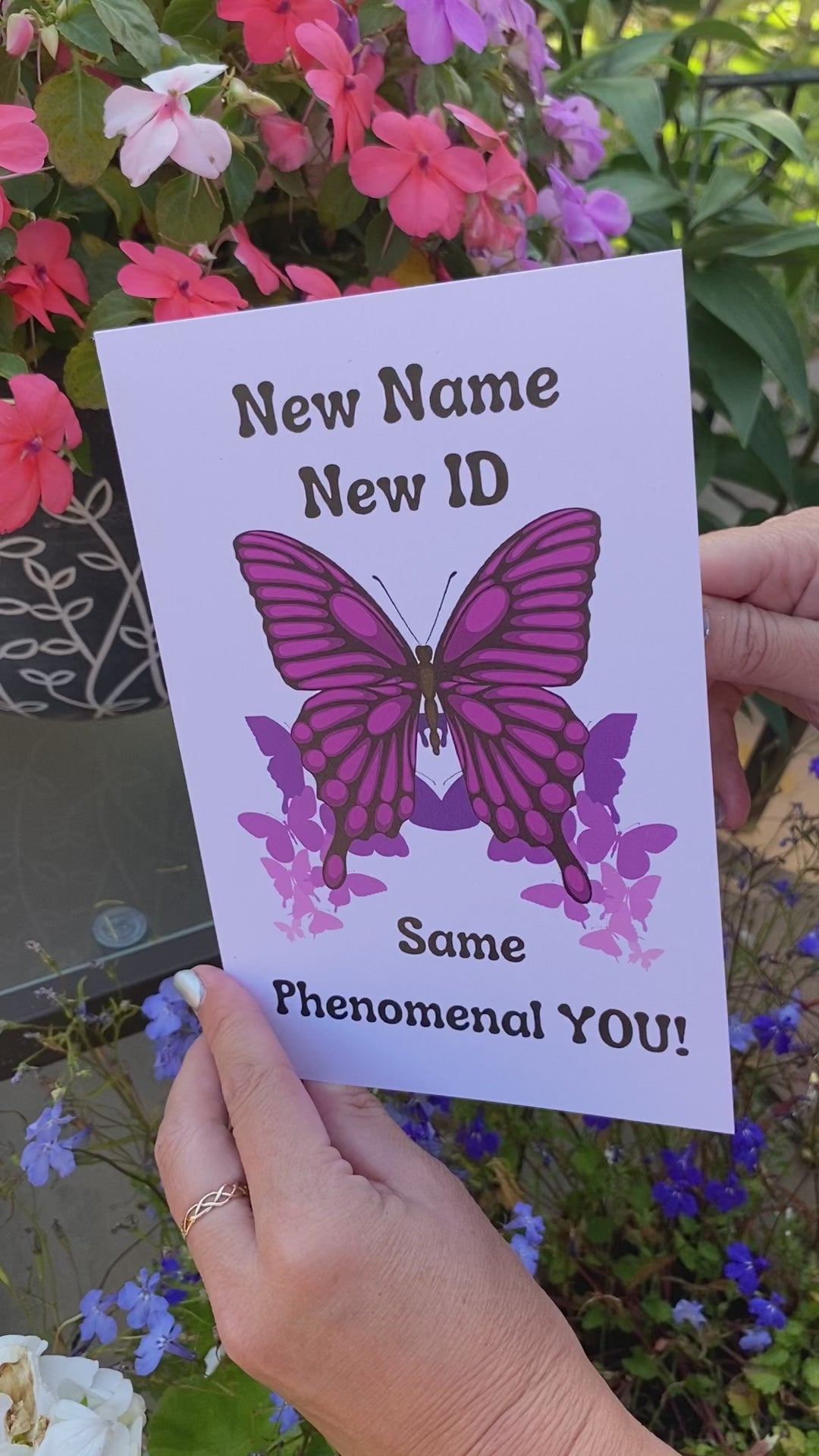 Transition Celebration Card | New Name, New ID, Same Phenomenal YOU! Pink