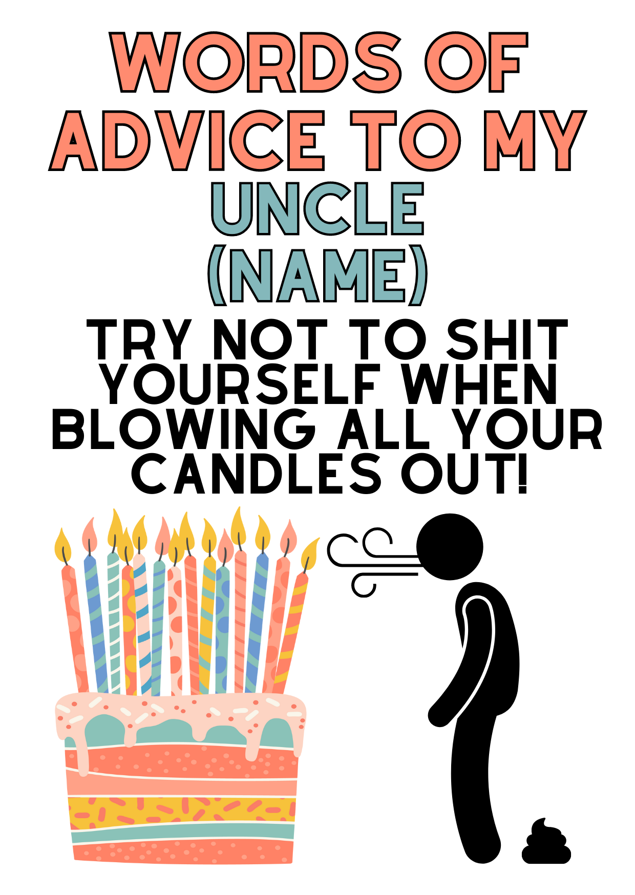 Send this personalised and cheeky birthday card to your favourite uncle to remind him just how old he is! Featuring our unique illustrated posting pages meaning you can personalise the front of 'envelope' too.