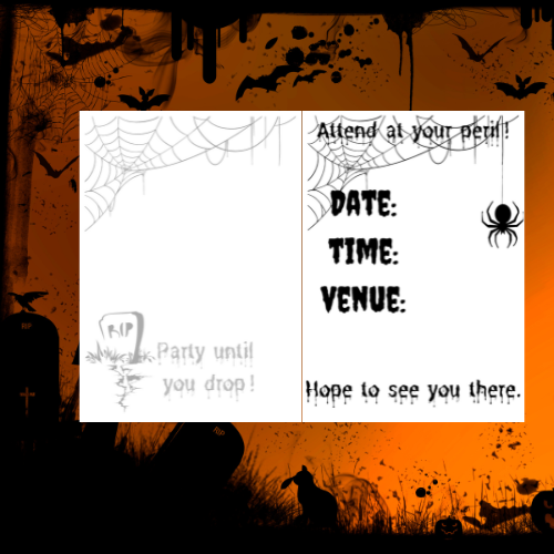 Inside reads: Party until you drop! Attend at your peril! Hope to see you there with space to add date, time, venue and who it's from.